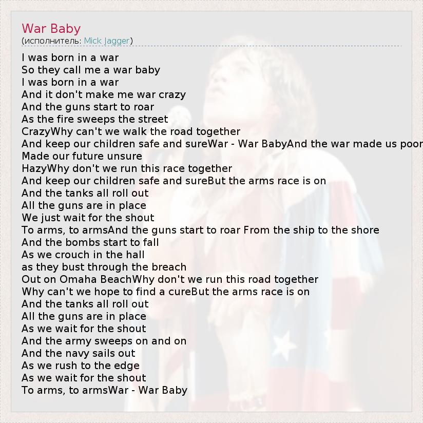 А как ты думаешь, о чем песня "War Baby" ?