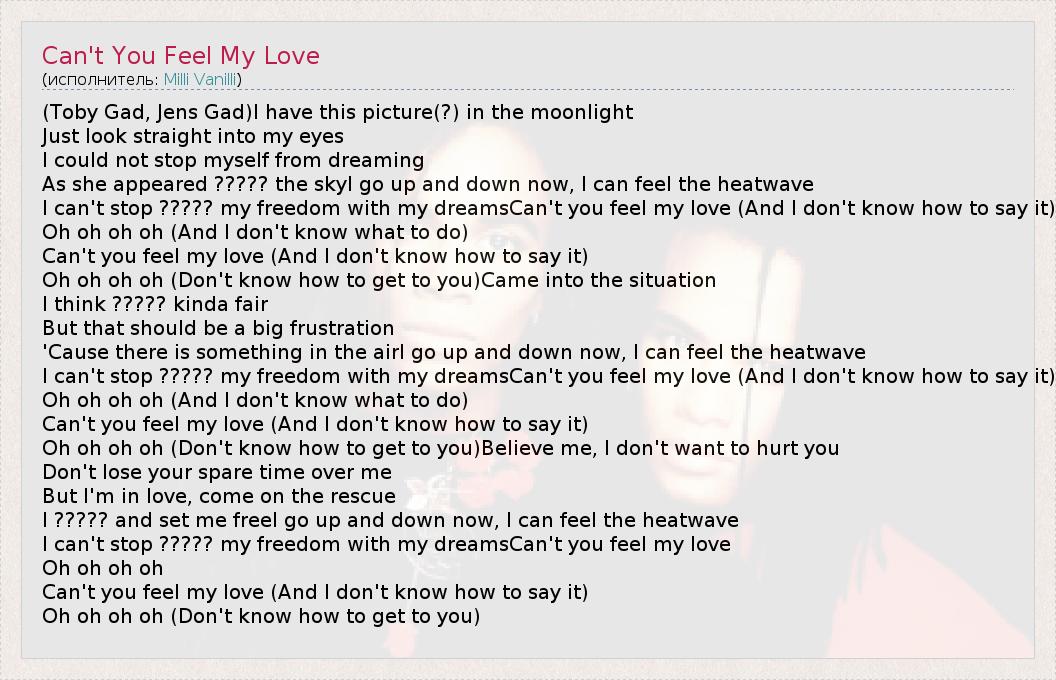 А как ты думаешь, о чем песня "Can't You Feel My Love" ?