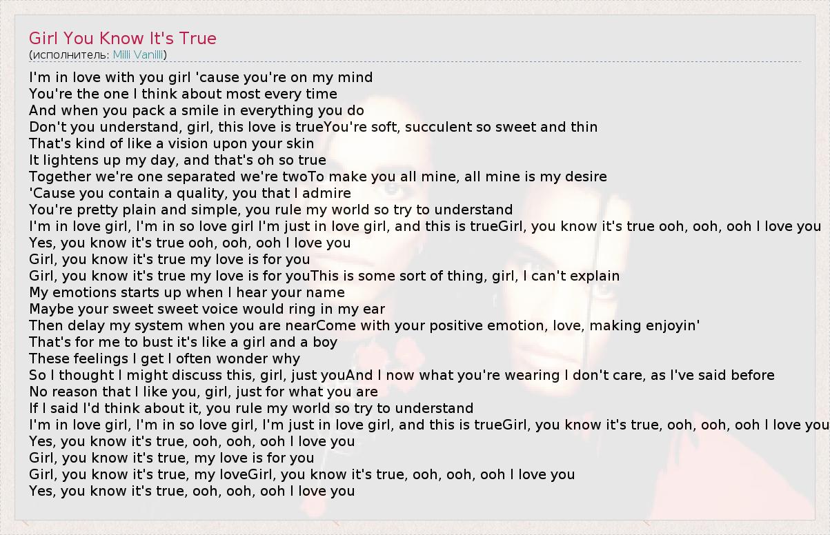 А как ты думаешь, о чем песня "Girl You Know It's True" ?