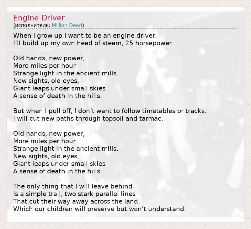 А как ты думаешь, о чем песня "Engine Driver" ?