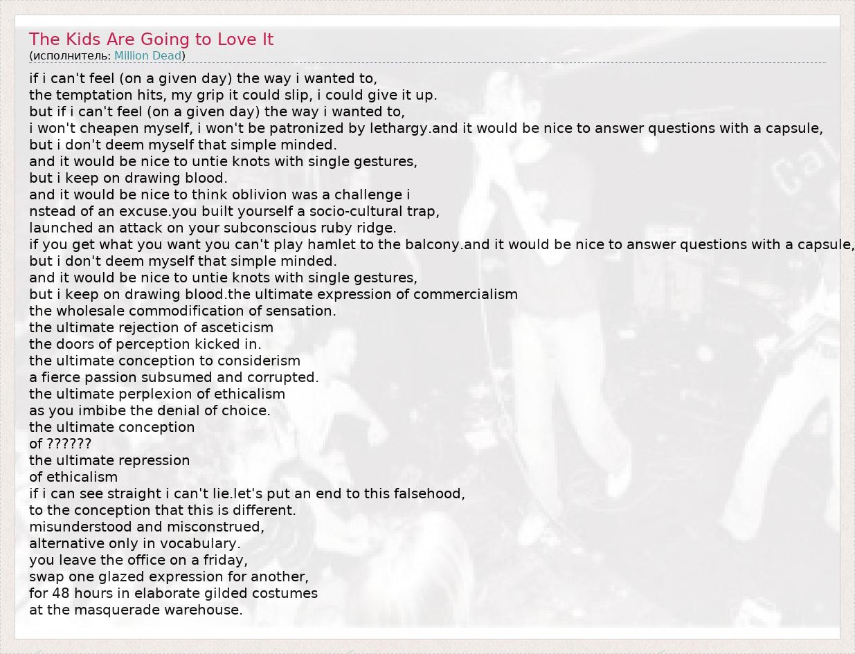 А как ты думаешь, о чем песня "The Kids Are Going to Love It" ?
