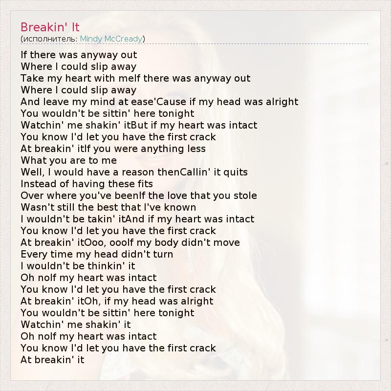 А как ты думаешь, о чем песня "Breakin' It" ?