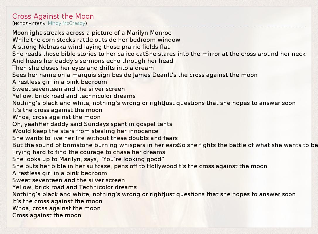 А как ты думаешь, о чем песня "Cross Against the Moon" ?