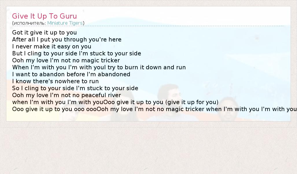 А как ты думаешь, о чем песня "Give It Up To Guru" ?