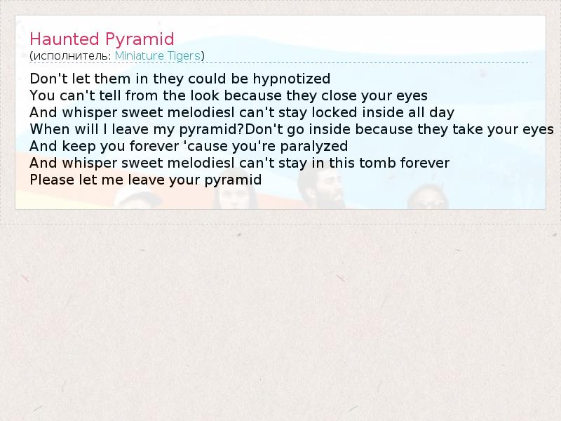 А как ты думаешь, о чем песня "Haunted Pyramid" ?