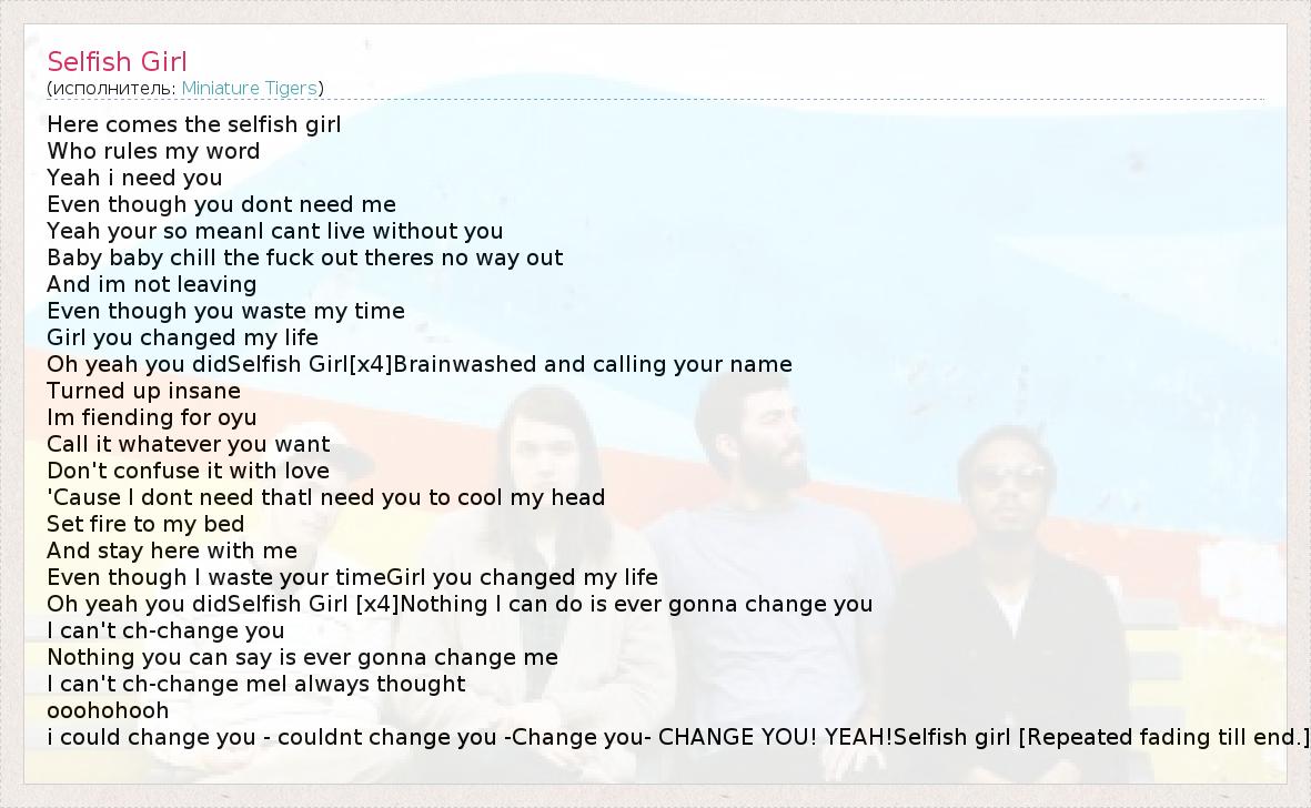 А как ты думаешь, о чем песня "Selfish Girl" ?