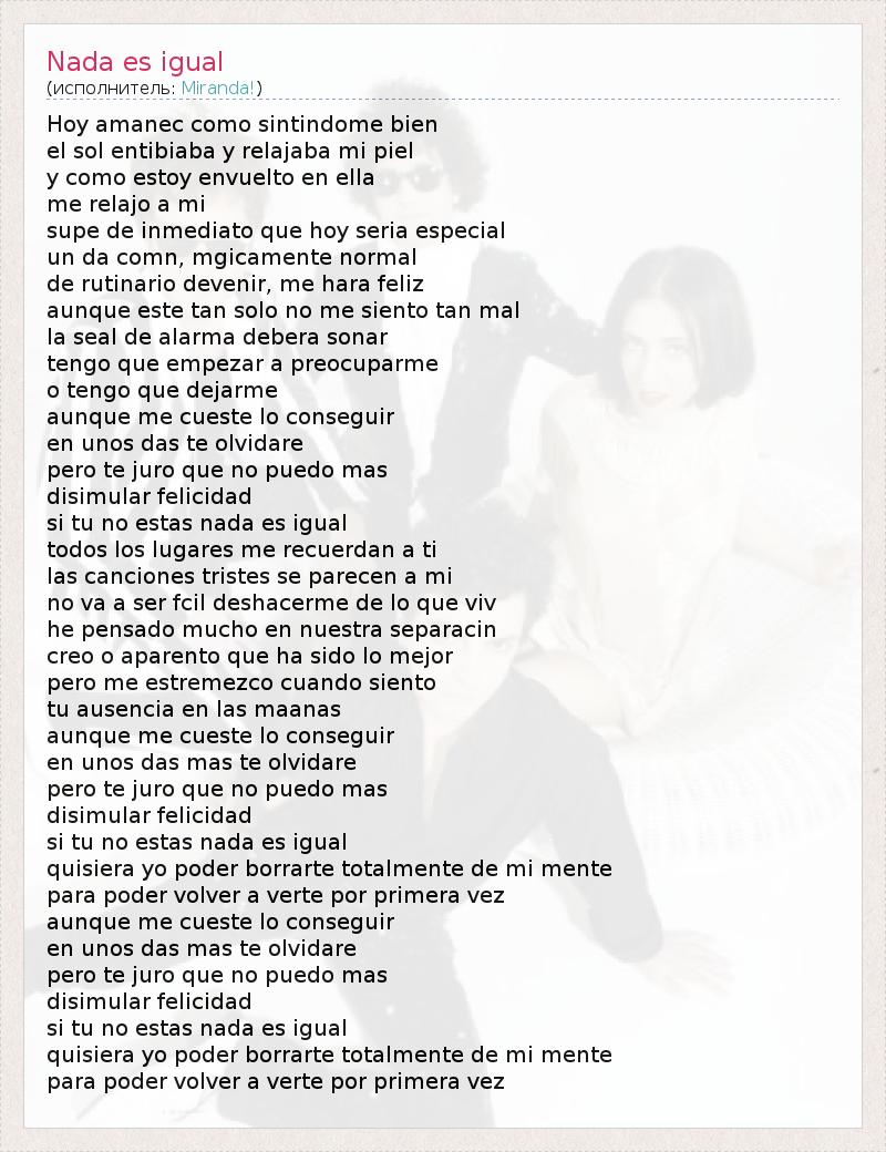 А как ты думаешь, о чем песня "Nada es igual" ?