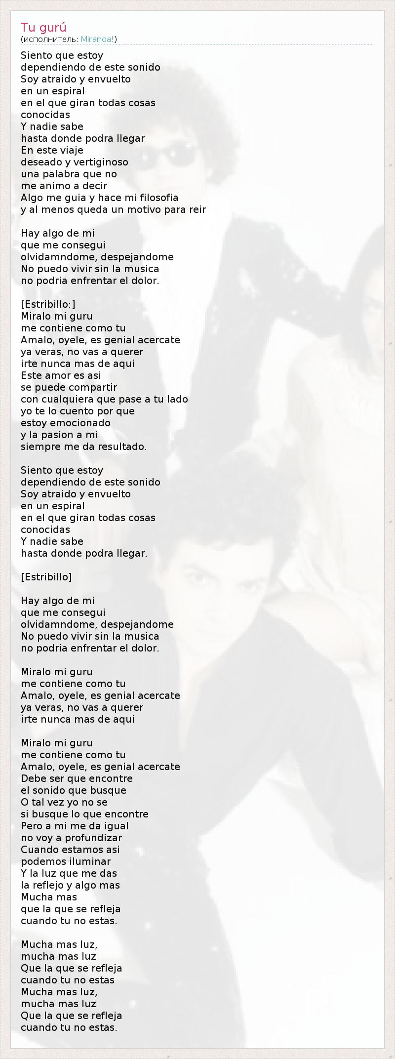 А как ты думаешь, о чем песня "Tu gurú" ?
