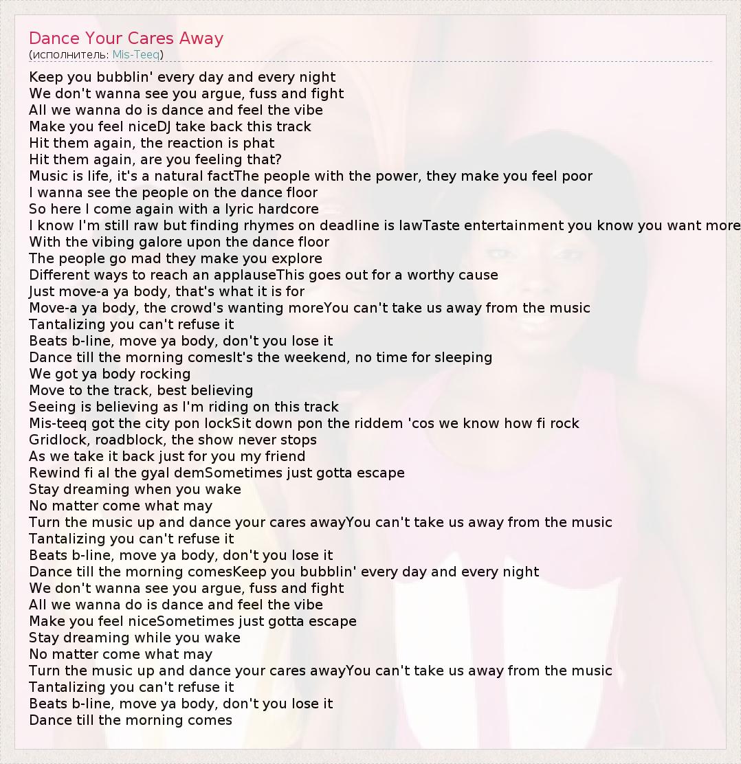ГлавнаяИсполнителиMis-TeeqDance Your Cares Away