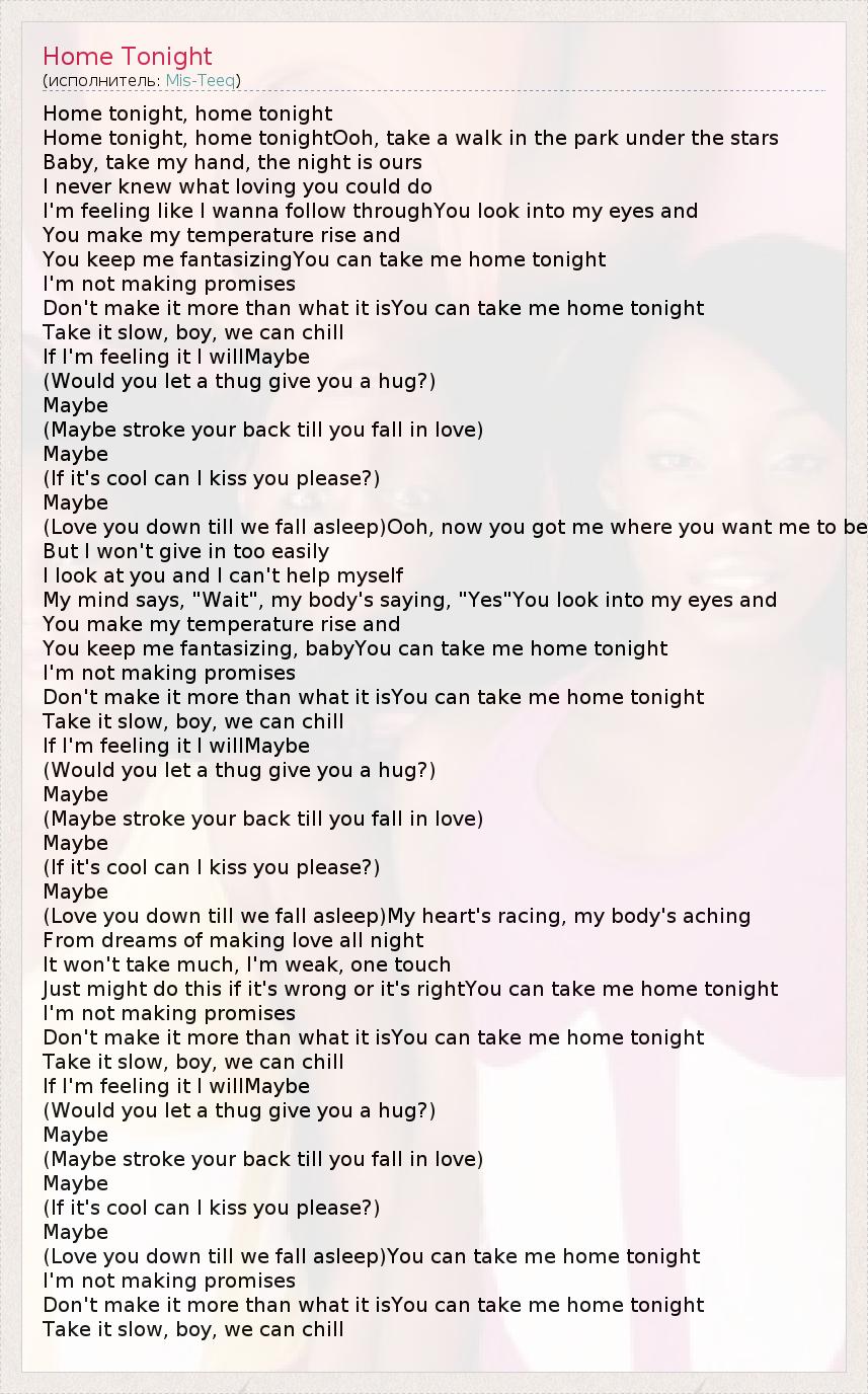 А как ты думаешь, о чем песня "Home Tonight" ?