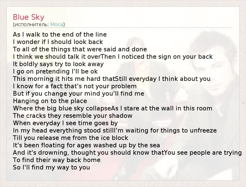 А как ты думаешь, о чем песня "Blue Sky" ?