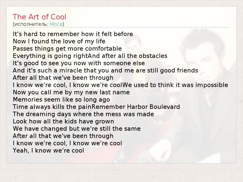 А как ты думаешь, о чем песня "The Art of Cool" ?