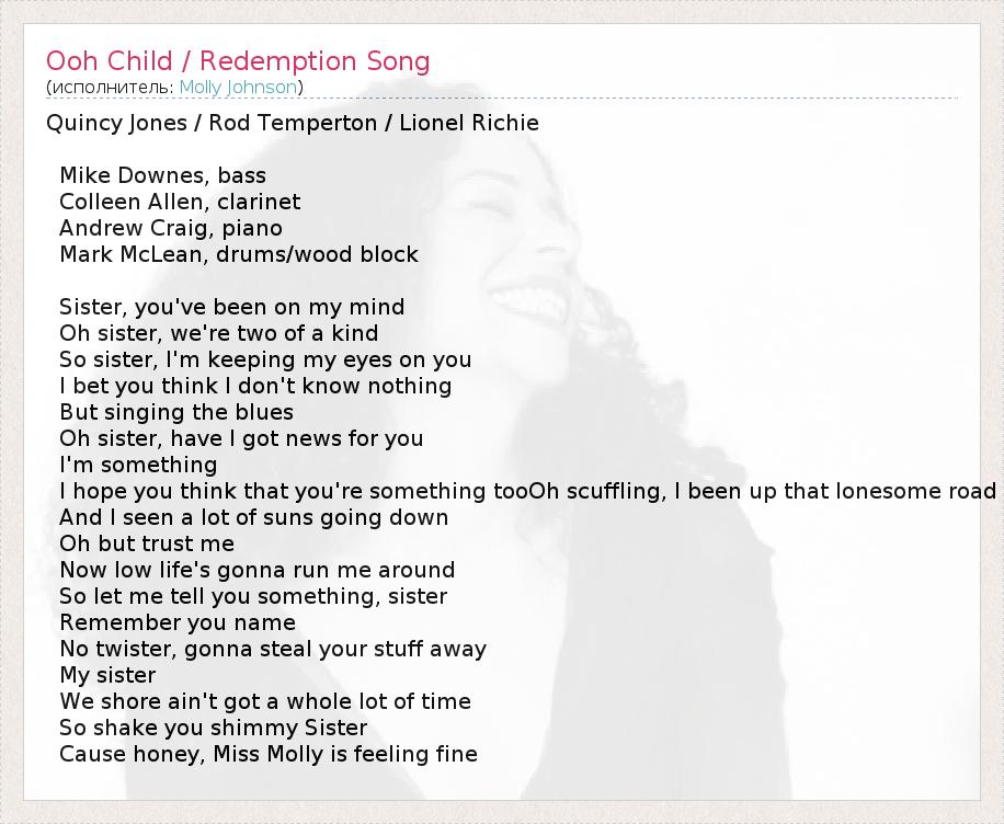 А как ты думаешь, о чем песня "Ooh Child / Redemption Song" ?