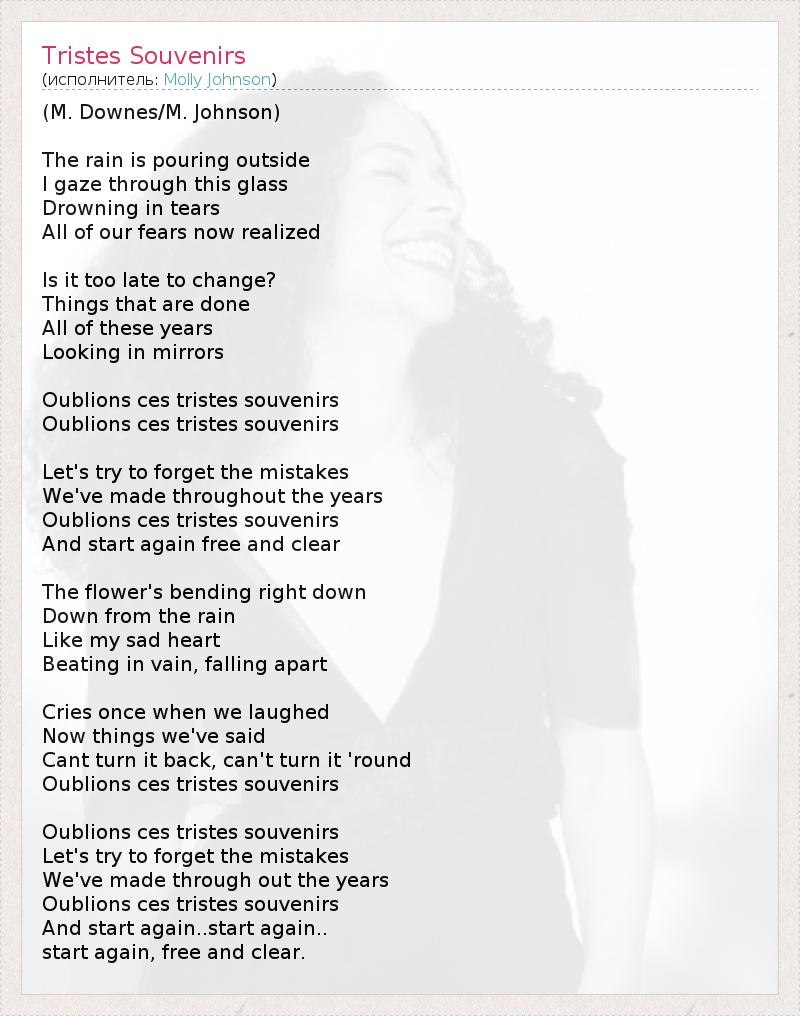 А как ты думаешь, о чем песня "Tristes Souvenirs" ?
