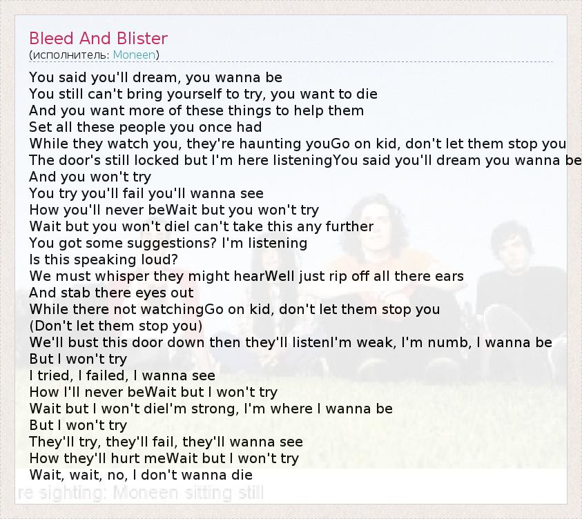 А как ты думаешь, о чем песня "Bleed And Blister" ?