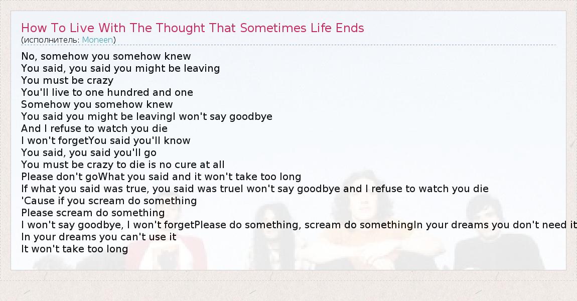 А как ты думаешь, о чем песня "How To Live With The Thought That Sometimes Life Ends" ?