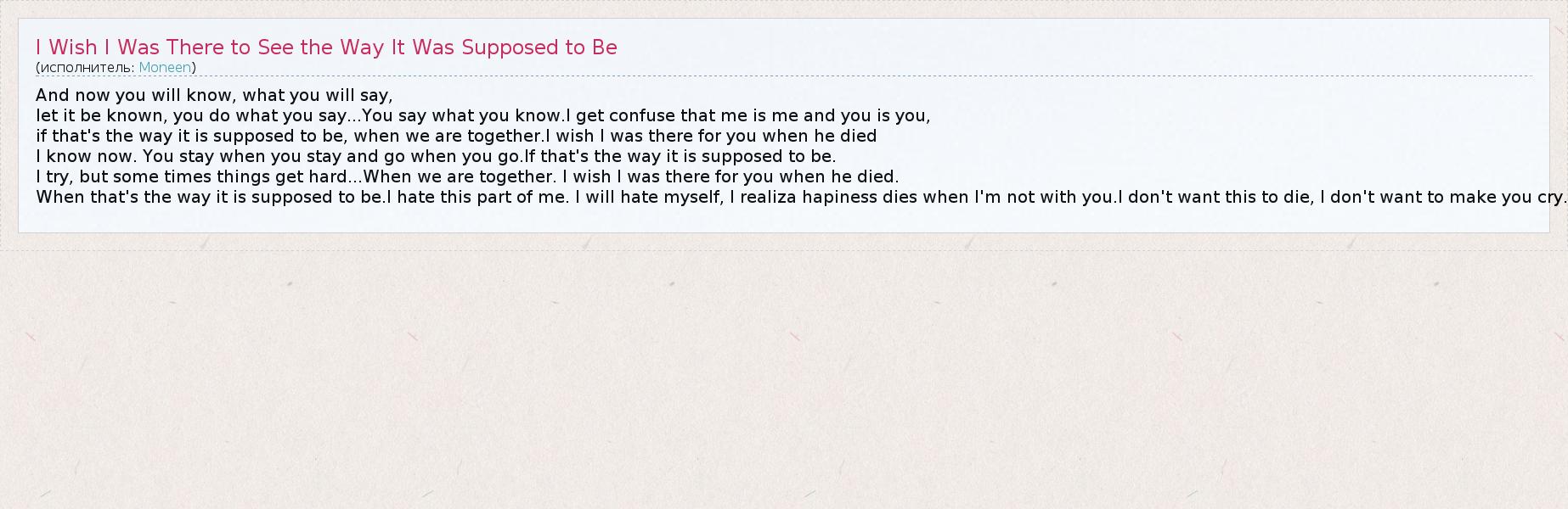 А как ты думаешь, о чем песня "I Wish I Was There to See the Way It Was Supposed to Be" ?