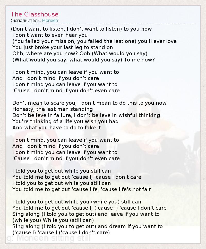 А как ты думаешь, о чем песня "The Glasshouse" ?