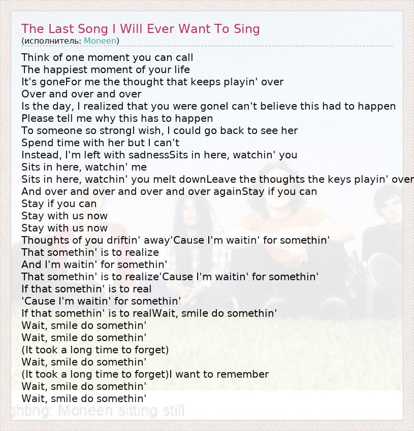 ГлавнаяИсполнителиMoneenThe Last Song I Will Ever Want To Sing