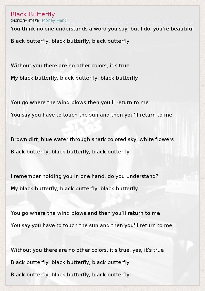 А как ты думаешь, о чем песня "Black Butterfly" ?