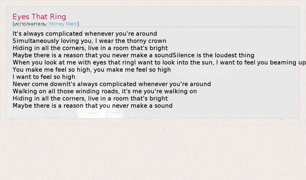 А как ты думаешь, о чем песня "Eyes That Ring" ?