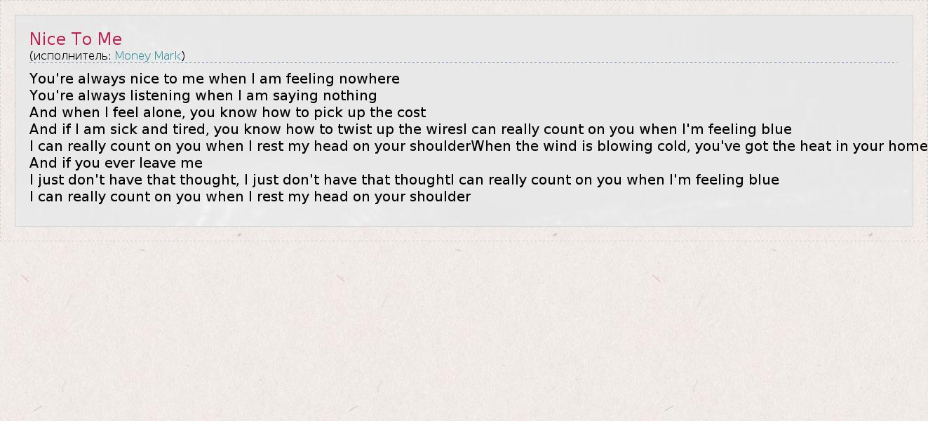 А как ты думаешь, о чем песня "Nice To Me" ?