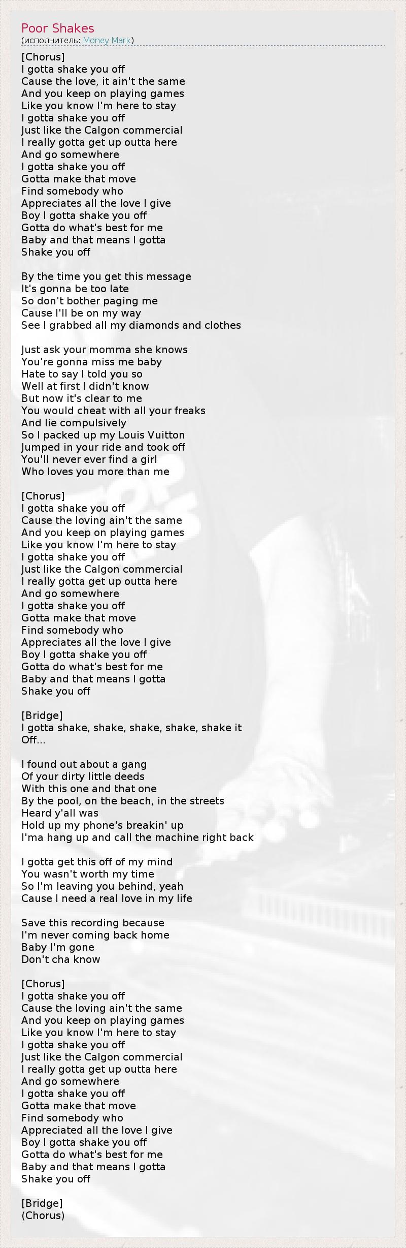 А как ты думаешь, о чем песня "Poor Shakes" ?