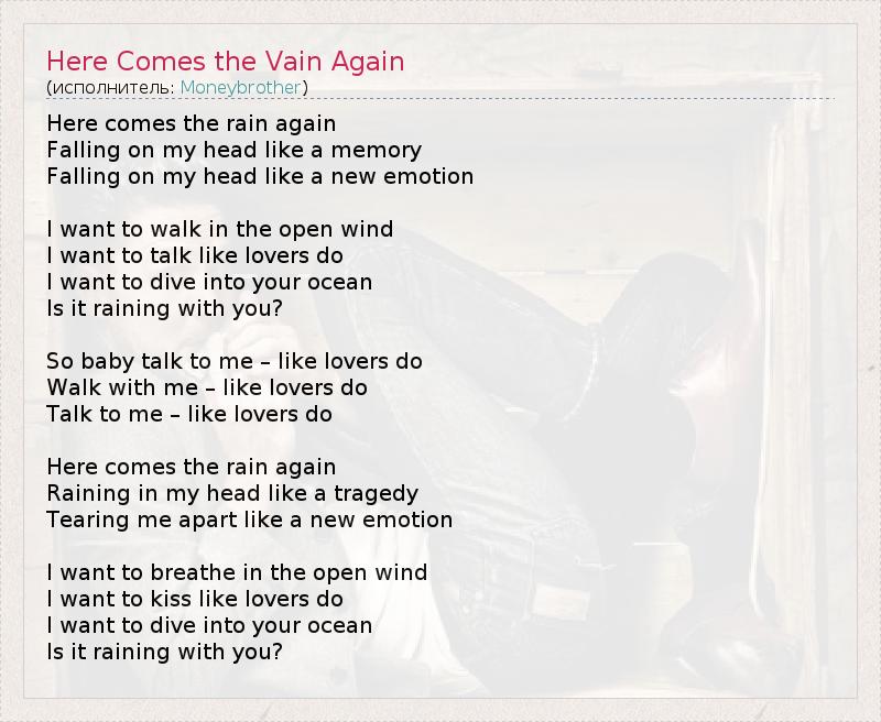 А как ты думаешь, о чем песня "Here Comes the Vain Again" ?