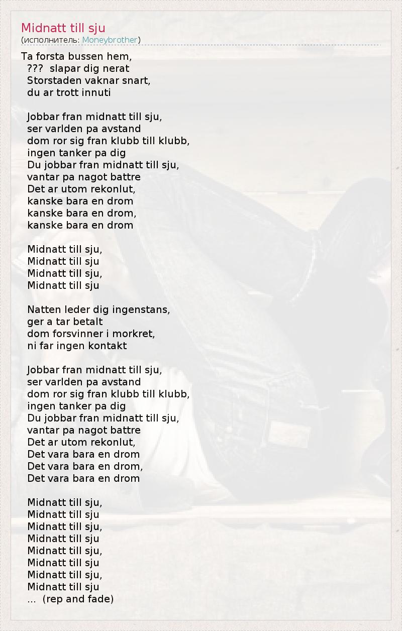 А как ты думаешь, о чем песня "Midnatt till sju" ?