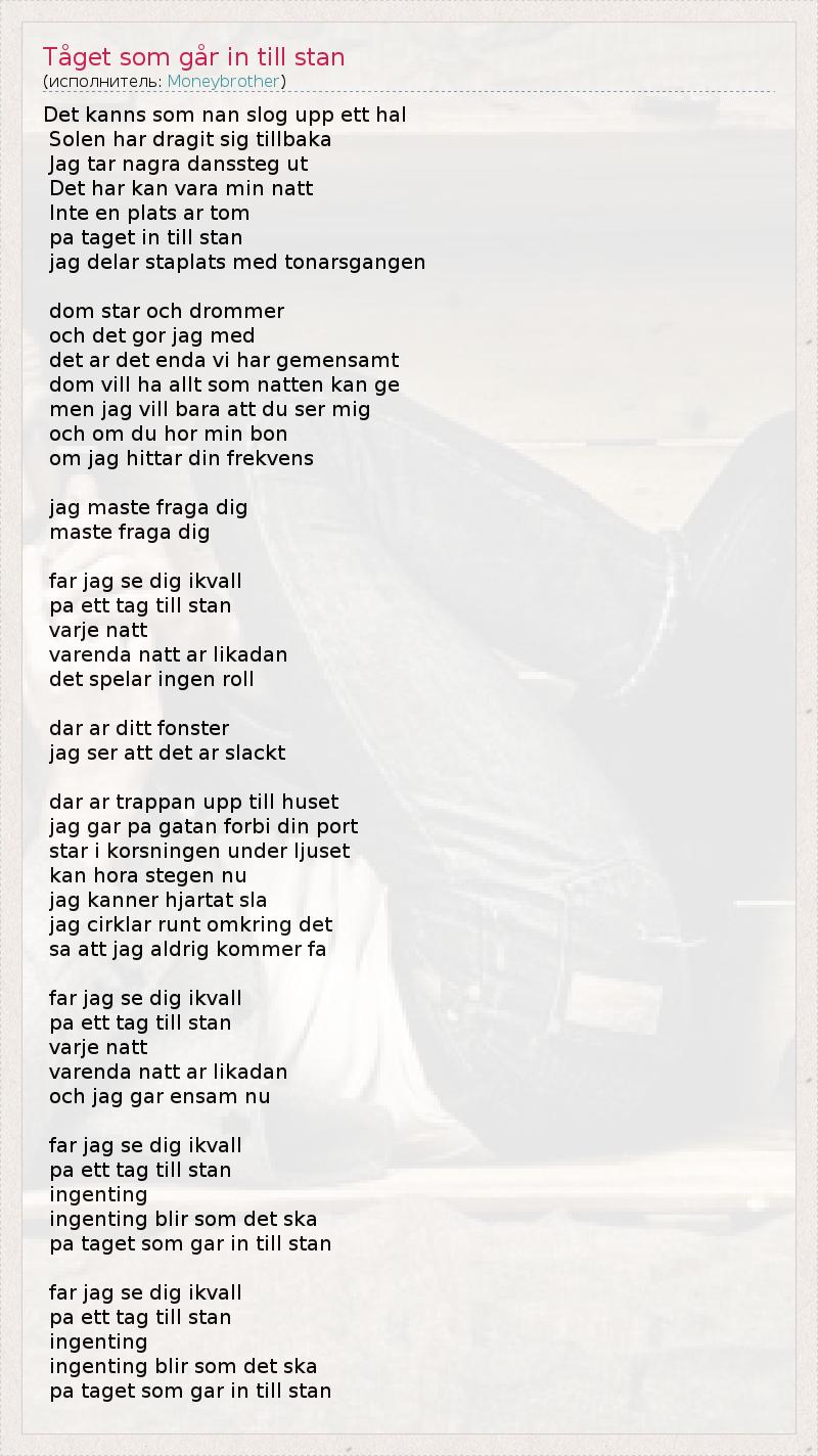 А как ты думаешь, о чем песня "Tåget som går in till stan" ?