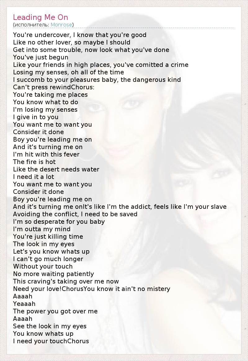 А как ты думаешь, о чем песня "Leading Me On" ?