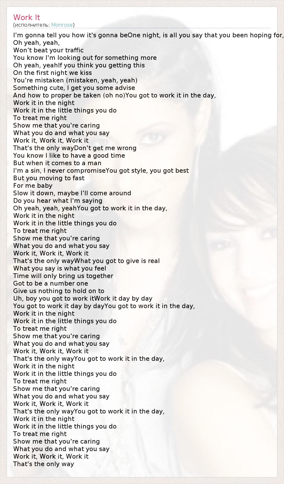 Oh yeah, yeah, yeahYou got to work it in the day,
