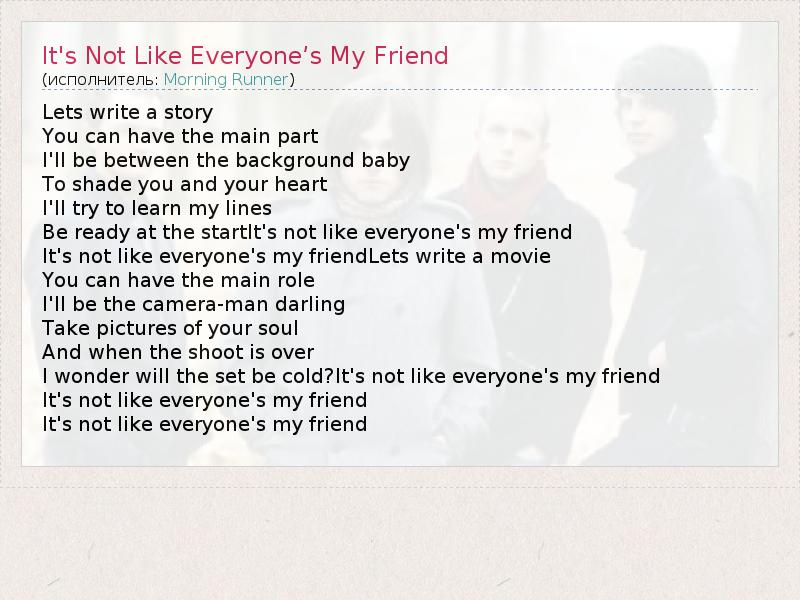 А как ты думаешь, о чем песня "It's Not Like Everyone’s My Friend" ?