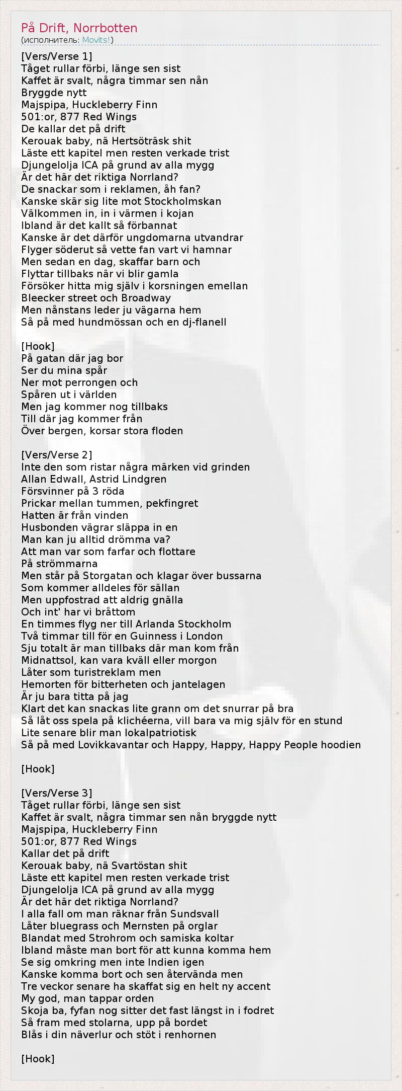 ГлавнаяИсполнителиMovits!På Drift, Norrbotten