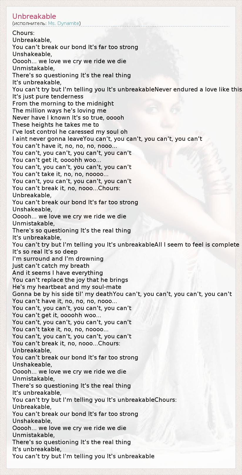 You can't try but I'm telling you It's unbreakableChours: