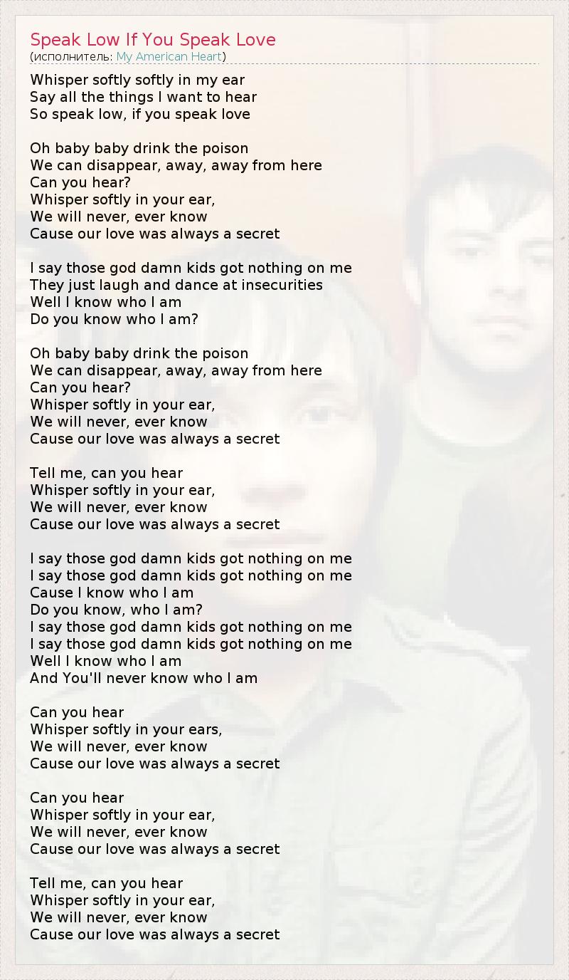 ГлавнаяИсполнителиMy American HeartSpeak Low If You Speak Love