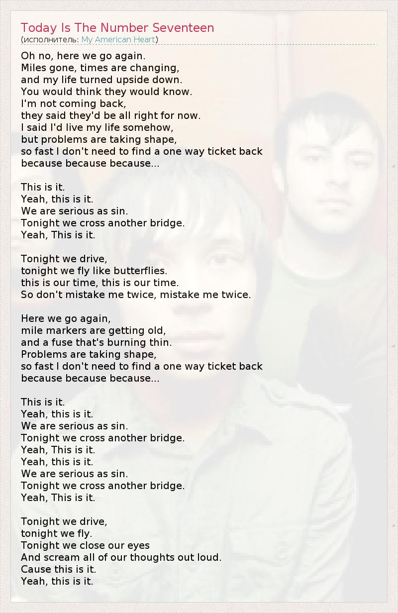 ГлавнаяИсполнителиMy American HeartToday Is The Number Seventeen