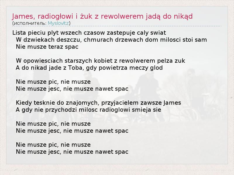 А как ты думаешь, о чем песня "James, radiogłowi i żuk z rewolwerem jadą do nikąd" ?