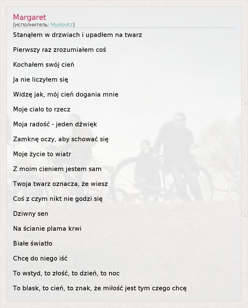 Это интересно:Myslovitz — польская рок-группа образована в 1992 в городе Мысловице. Название группы — это немецкое название данного города.Артур Ройек образовал группу в 1992 году. Она завоевала несколько призов на фестивалях, после чего группа подписала контракт с издательством MJM Music Polska. В 1995 году группа выпустила альбом Myslovitz, хорошо принятый критиками. Продюсером был Ян Гаррис, ранее известный по сотрудничеству... продолжение