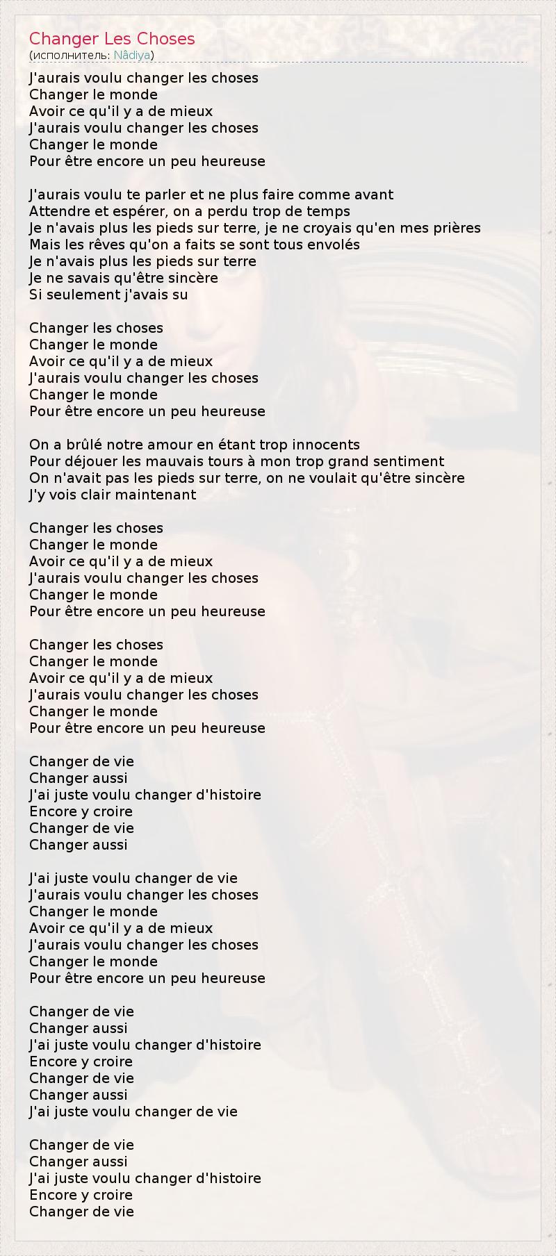 А как ты думаешь, о чем песня "Changer Les Choses" ?