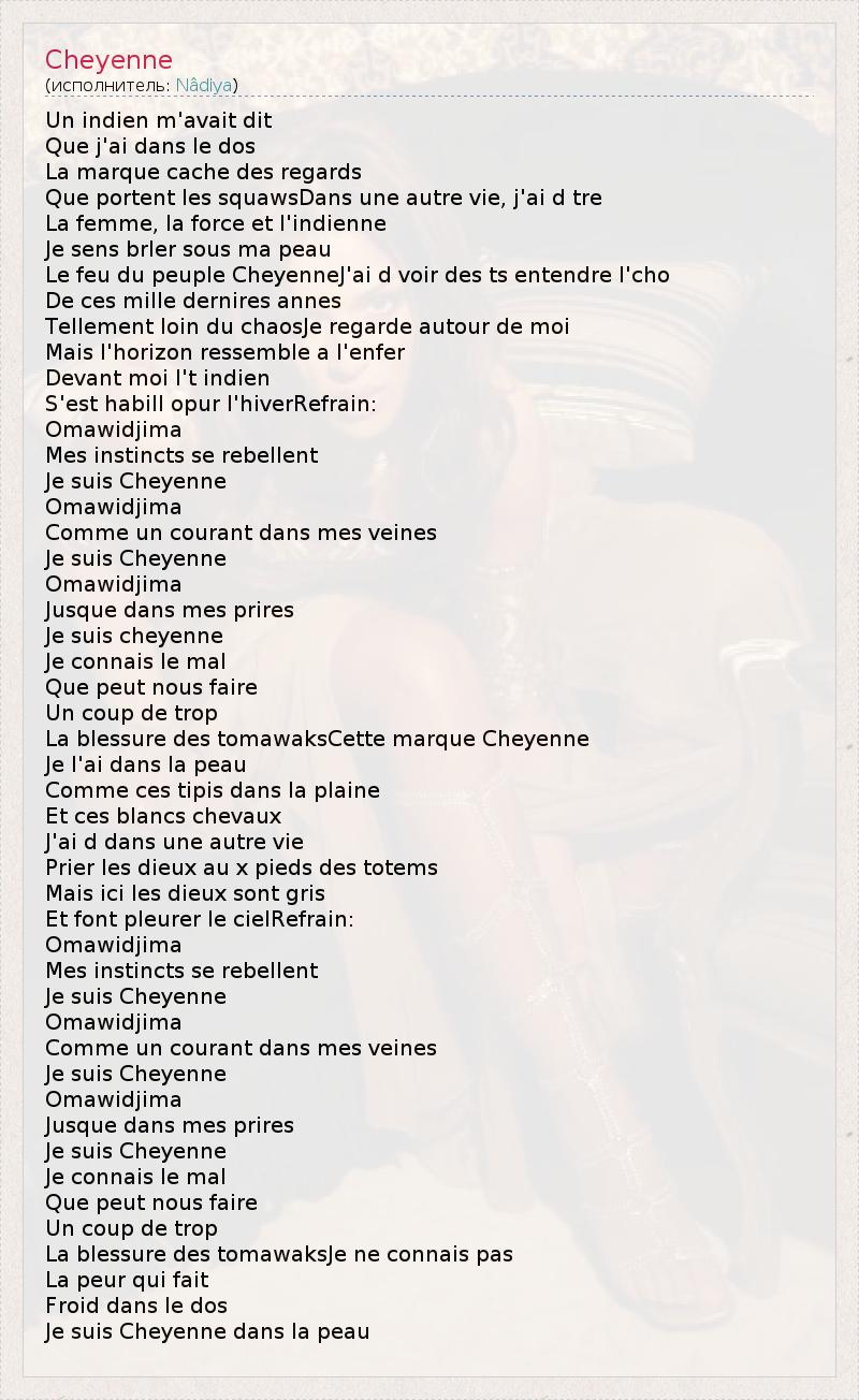 А как ты думаешь, о чем песня "Cheyenne" ?