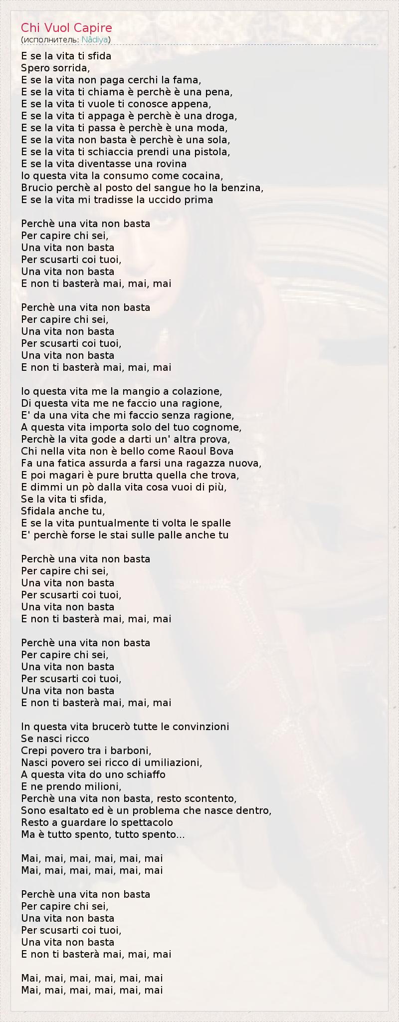 А как ты думаешь, о чем песня "Chi Vuol Capire" ?