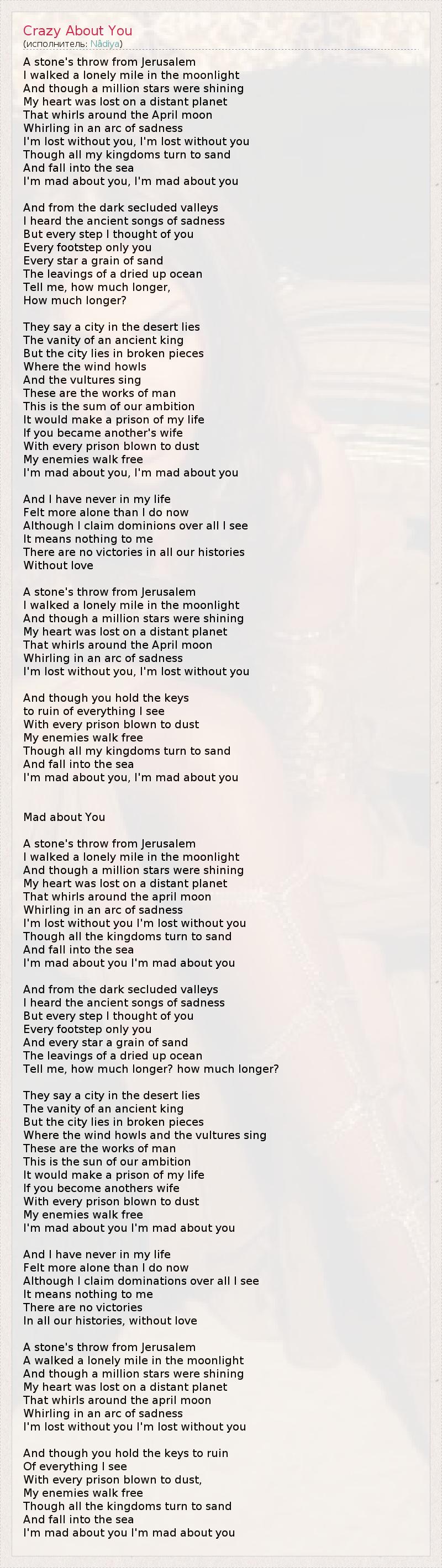 Я схожу по тебе с ума, из-за тебя я теряю рассудок....