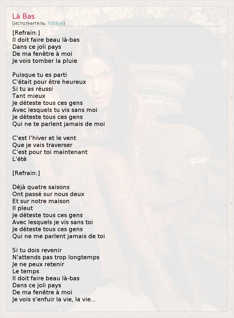 Это интересно:Музыкой Nadiya занялась не сразу. Сначала она делала то, что у неё получалось хорошо - занималась лёгкой атлетикой. Здесь Nadiya добилась серьёзных успехов, в 16-летнем возрасте став чемпионкой Франции в беге на 800 метров. Но этого ей было мало. Она хотела быть звездой, но не в мире спорта, а в музыке. Поэтому и переехала в Париж, когда ей было 20. У Nadiya алжирские корни. В семье было 6 детей, может быть,... продолжение
