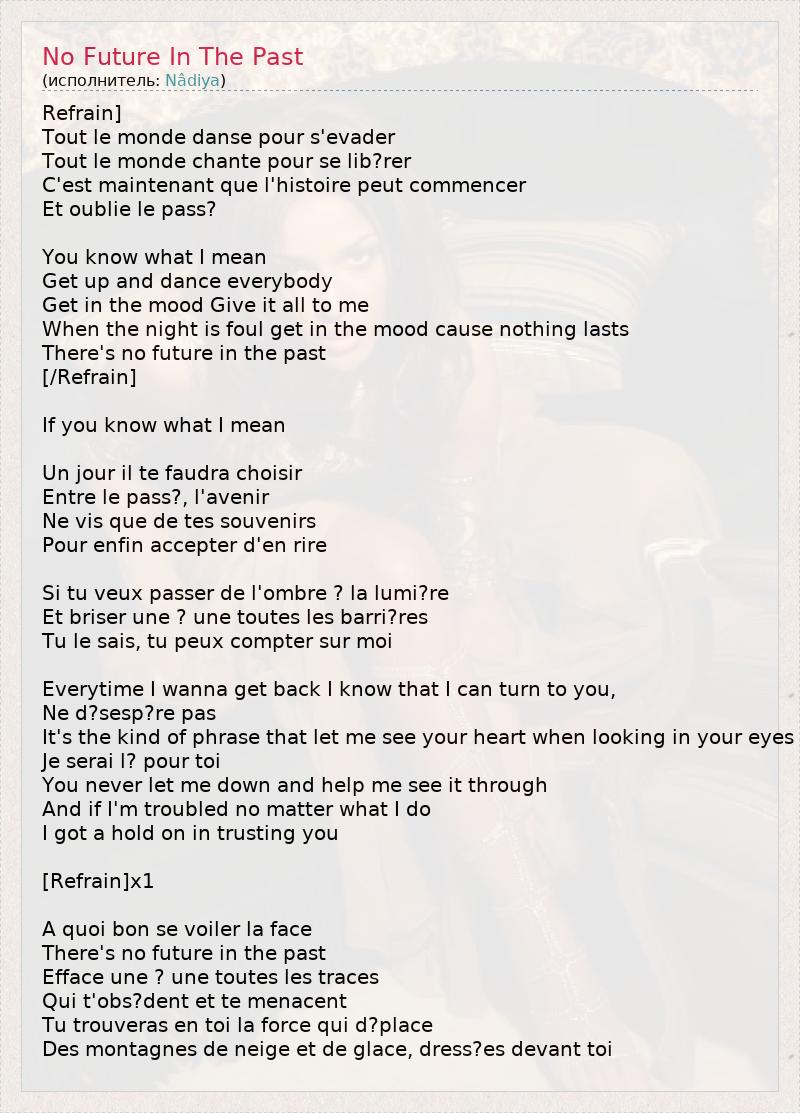 А как ты думаешь, о чем песня "No Future In The Past" ?