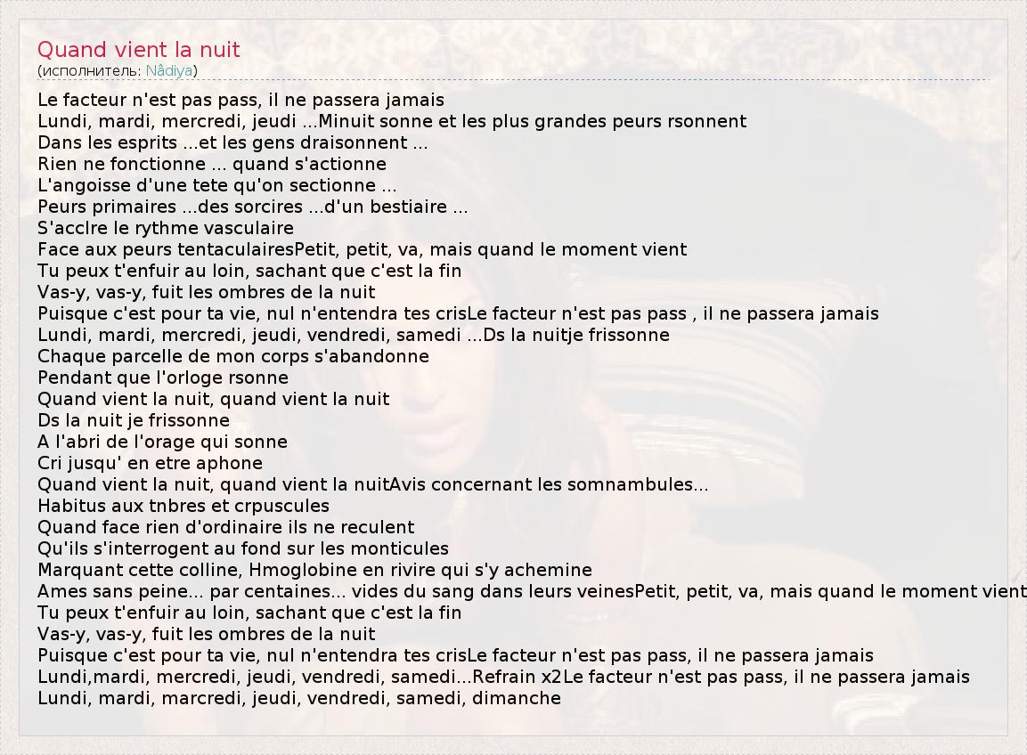 А как ты думаешь, о чем песня "Quand vient la nuit" ?