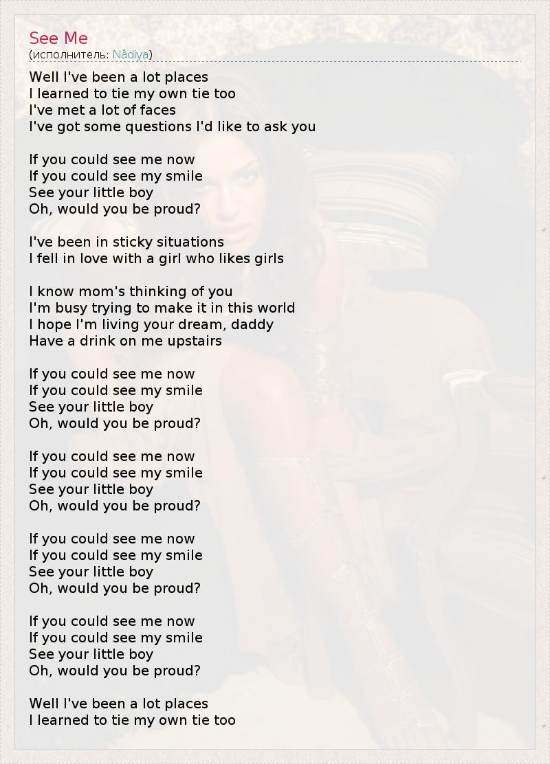 А как ты думаешь, о чем песня "See Me" ?