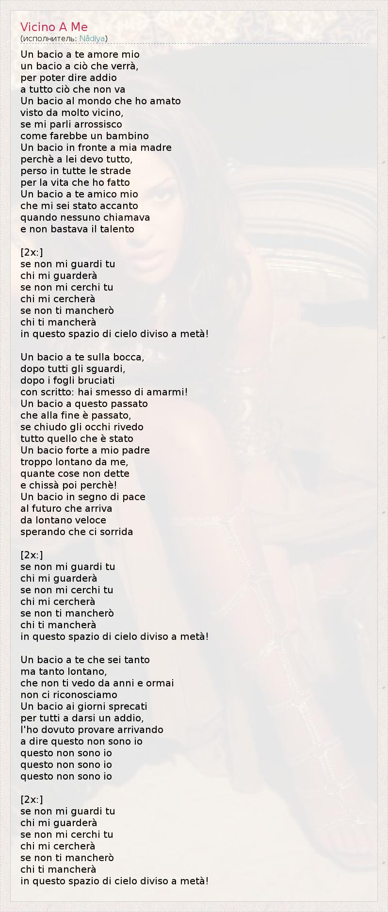 А как ты думаешь, о чем песня "Vicino A Me" ?