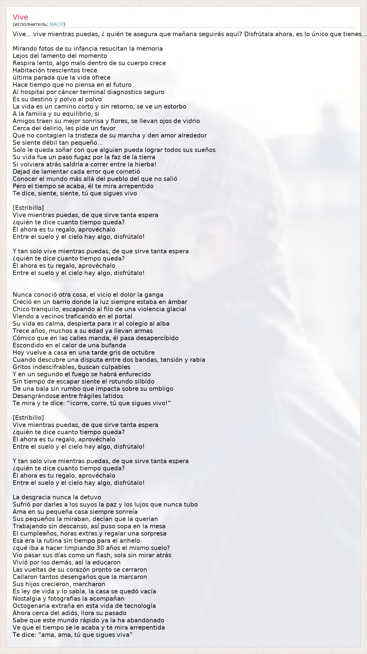 Te dice: “ama, ama, tú que sigues viva”