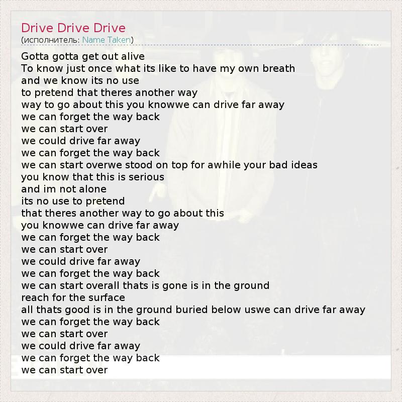 А как ты думаешь, о чем песня "Drive Drive Drive" ?
